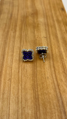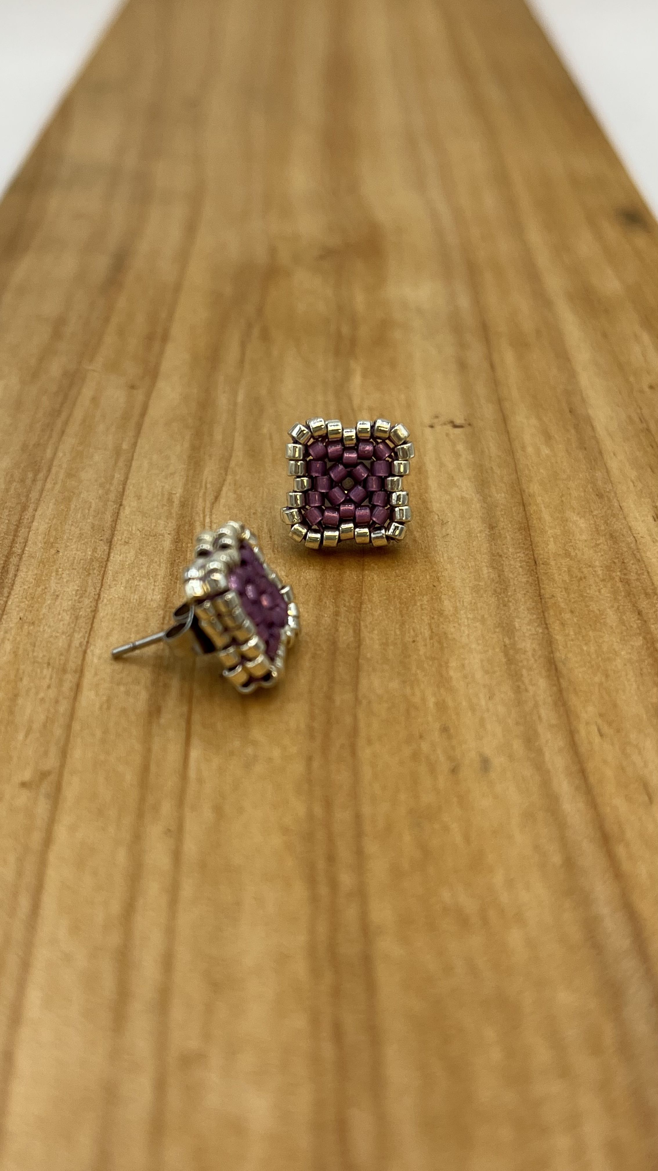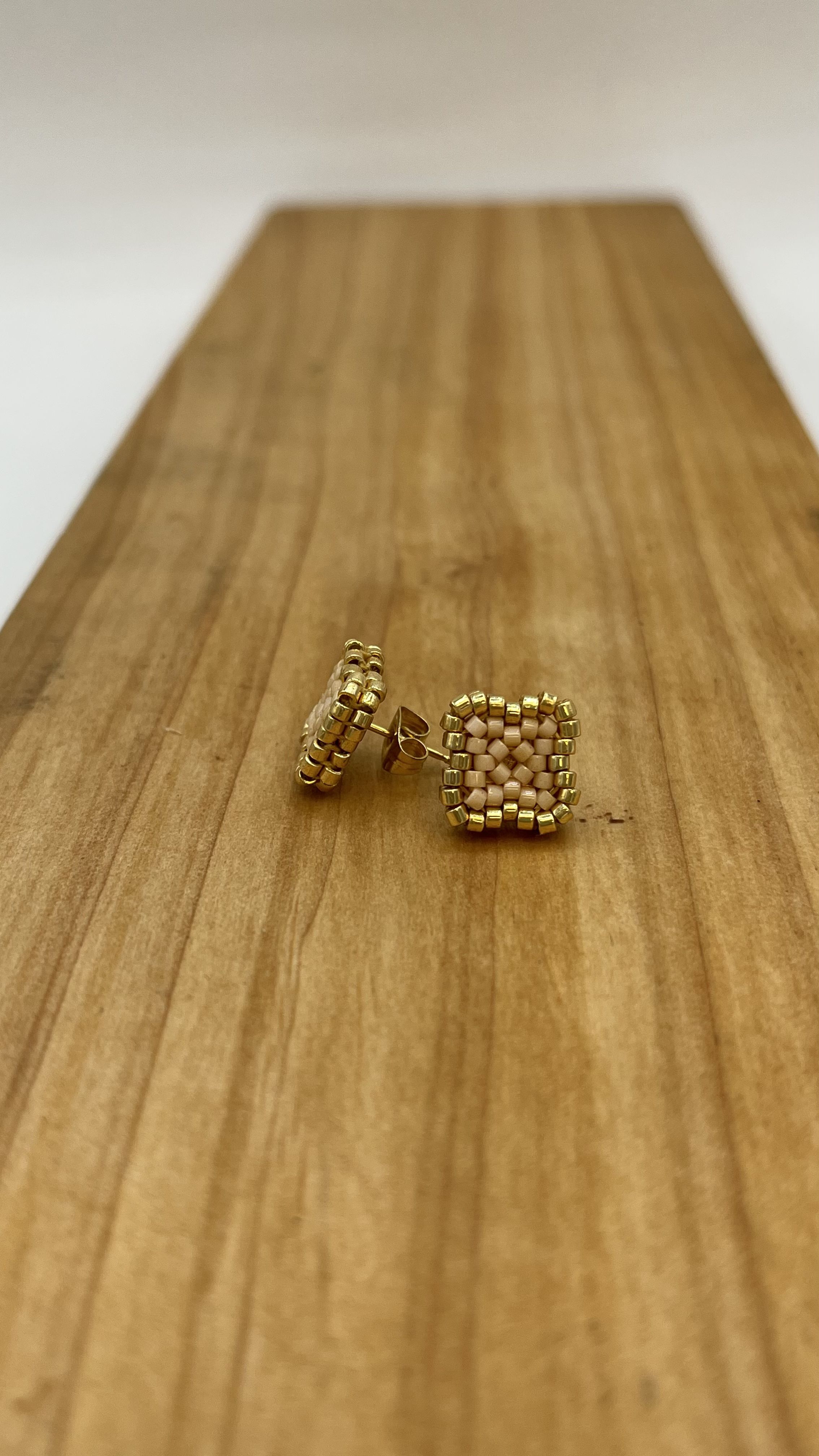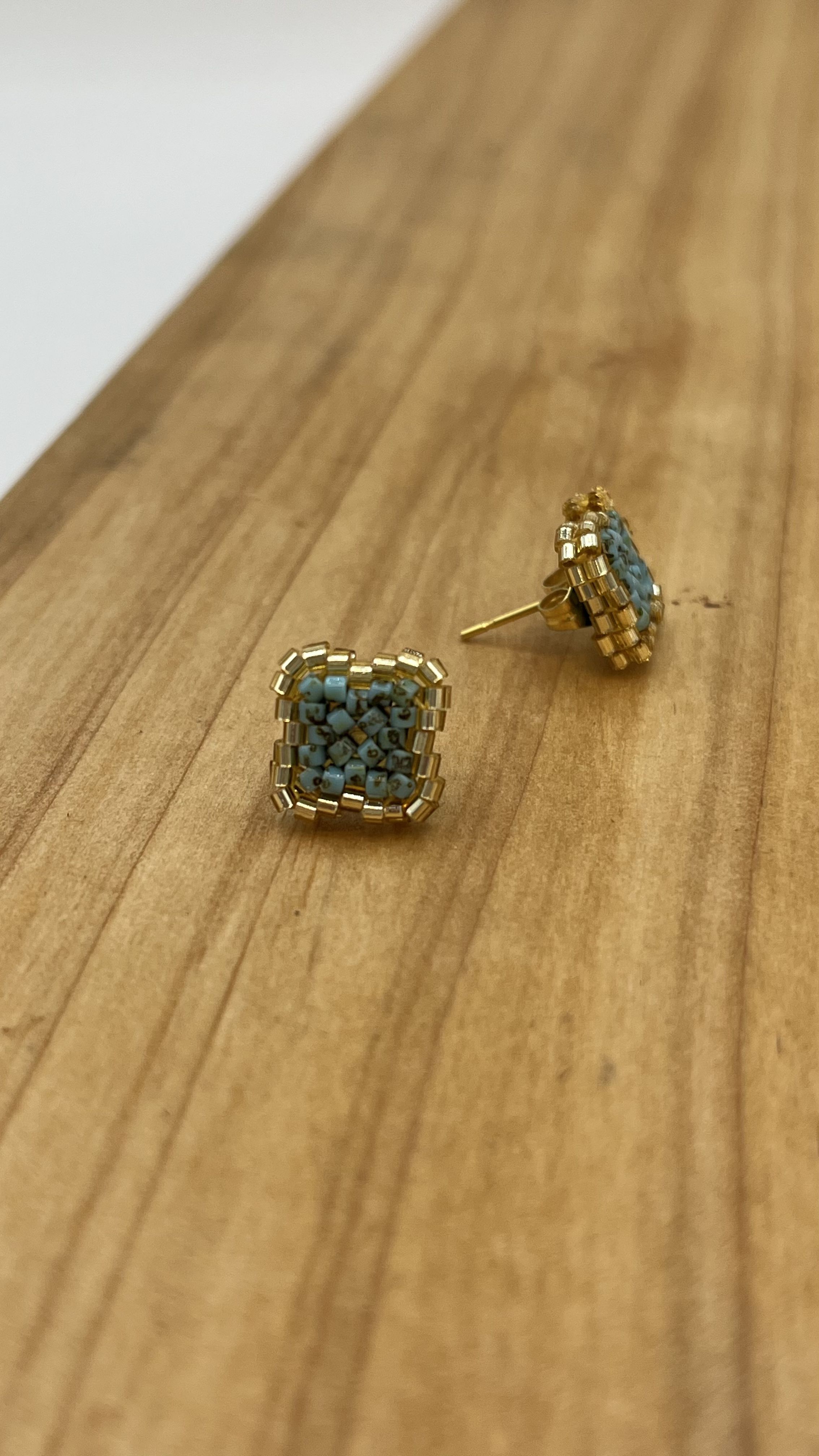 گوشواره میخی میوکی دو رنگ دوخته شده با منجوقهای دلیکا میوکی