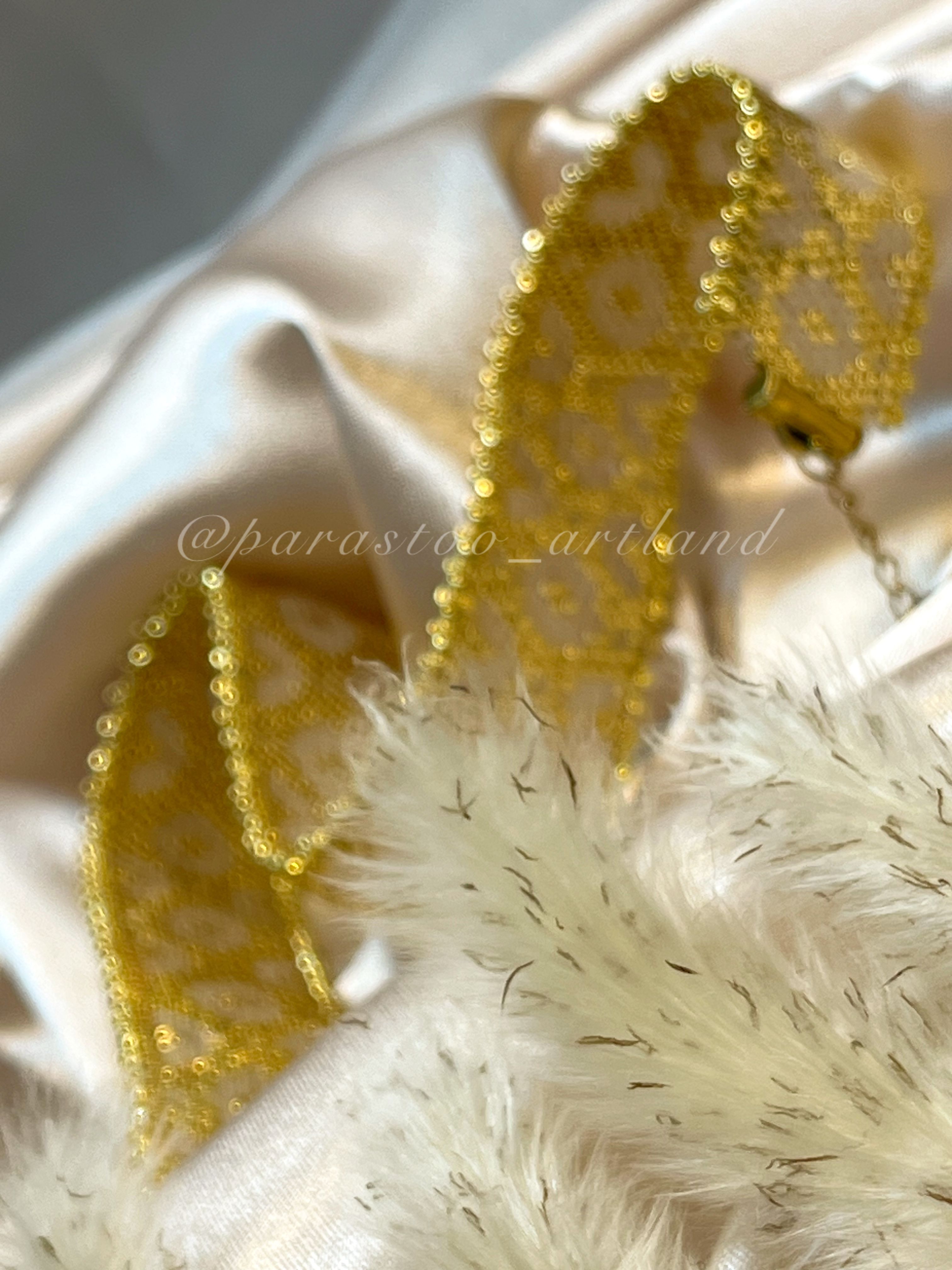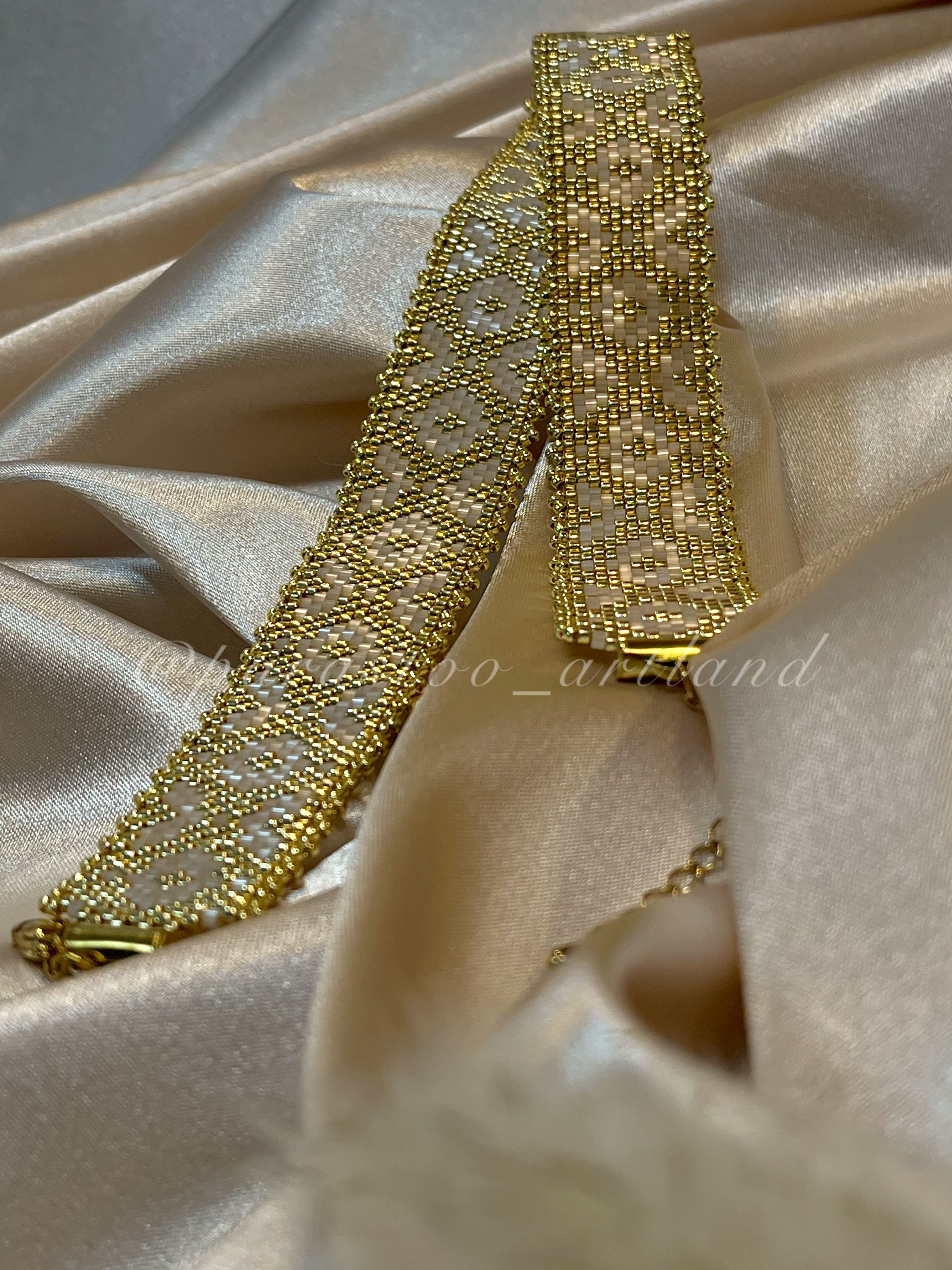 تمام متریال و منجوقهای استفاده شده در کارها از محصولات میوکی ژاپن هستند که کیفیتی درجه یک دارند و با نمونه های منجوقهای ایرانی-چک یا چینی هم از نظر یک دست بودن سایز منجوقها و هم از نظر ثبات رنگ اصلا قابل مقایسه نیستند و حتی کیفیتی خیلی بالاتر از نمونه ی کپی شده ی این محصول به نام FGBدارند