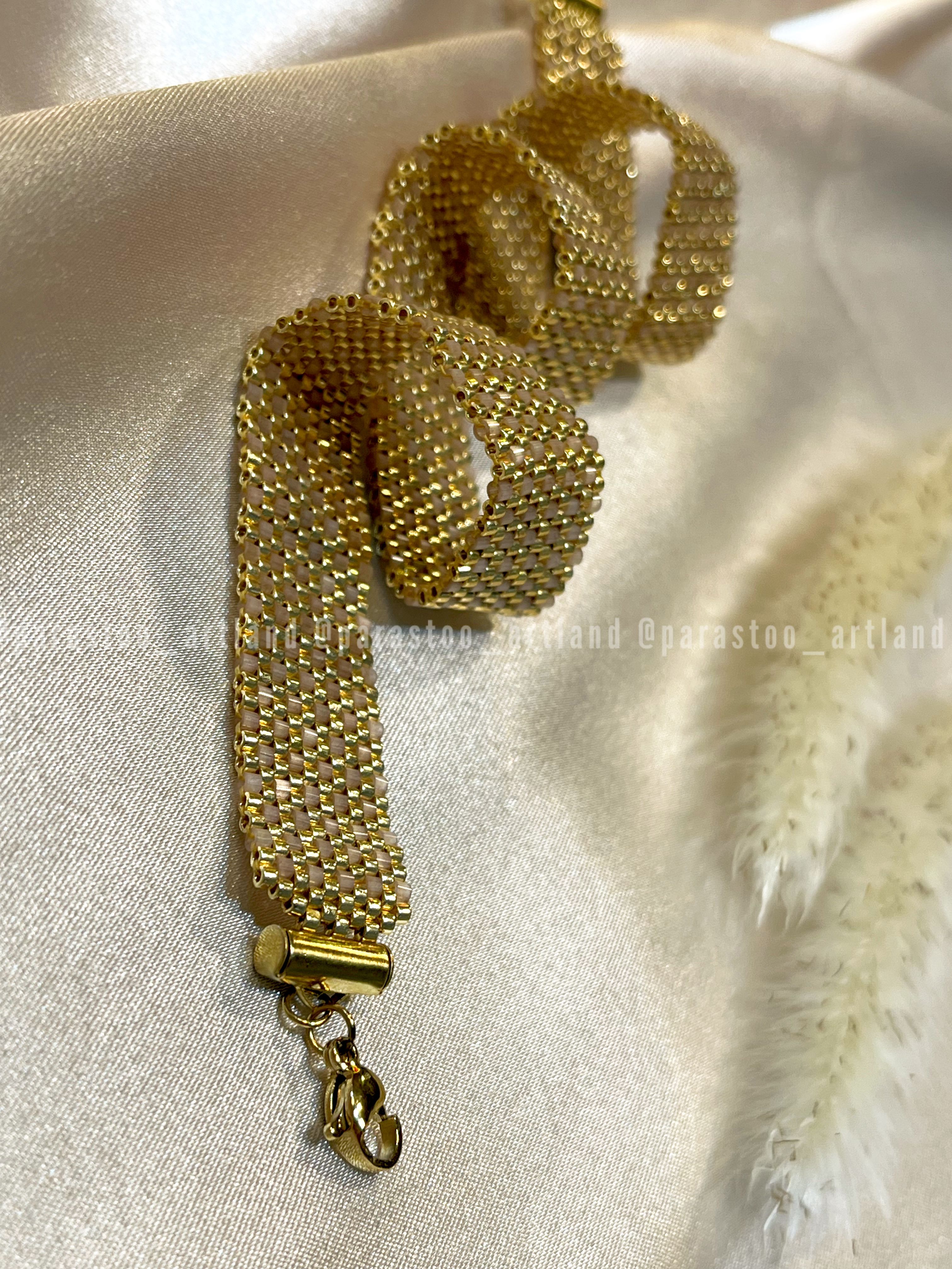 تمام متریال و منجوقهای استفاده شده در کارها از محصولات میوکی ژاپن هستند که کیفیتی درجه یک دارند و با نمونه های منجوقهای ایرانی-چک یا چینی هم از نظر یک دست بودن سایز منجوقها و هم از نظر ثبات رنگ اصلا قابل مقایسه نیستند و حتی کیفیتی خیلی بالاتر از نمونه ی کپی شده ی این محصول به نام FGBدارند