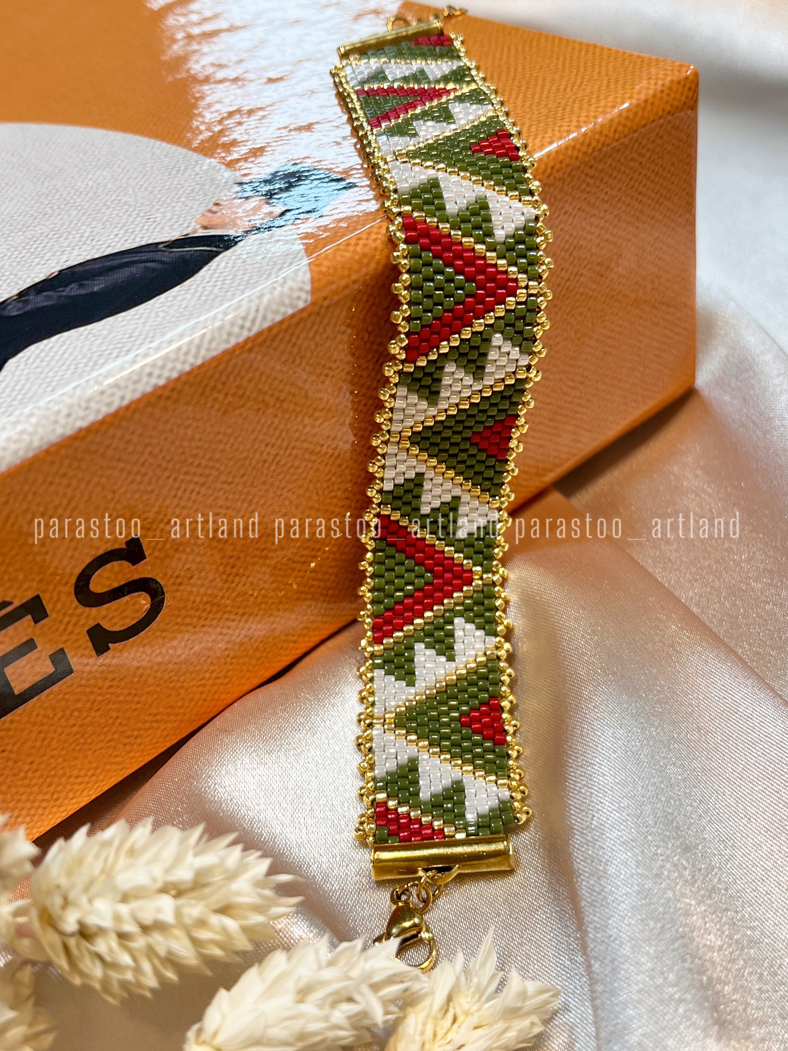 تمام متریال و منجوقهای استفاده شده در کارها از محصولات میوکی ژاپن هستند که کیفیتی درجه یک دارند و با نمونه های منجوقهای ایرانی-چک یا چینی هم از نظر یک دست بودن سایز منجوقها و هم از نظر ثبات رنگ اصلا قابل مقایسه نیستند و حتی کیفیتی خیلی بالاتر از نمونه ی کپی شده ی این محصول به نام FGBدارند